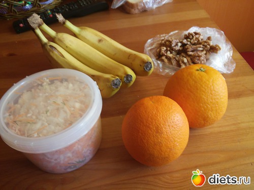 О: салат из капусты с морковкой (все свежее без соли и масла)