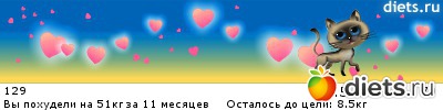 Добралась я до этой отметки спустя 10 месяцев упорства и работы над собой! Начало было с веса 129 кг в июле 2014г. Сегодня у меня минус 50 кг и вес 79 кг. Всё это время считала ккал и пила воду. Я на этом не останавливаюсь. Есть дальнейшие цели и они впереди ждут меня. ЖИТЬ ХОЧЕТСЯ!!!