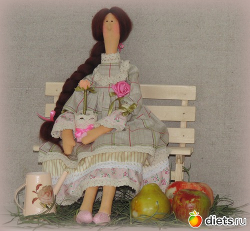 Вот нравятся мне Тильды с носиками, что то в них есть такого, что глядя на этих куколок невольно начинаешь улыбаться)))Столько от них тепла исходит! Ну а наряжать их для меня просто немыслимое удовольствие. А ткань какую специально для них выпускают-просто загляденье. Короче, у меня тильдомания с дачным продолжением