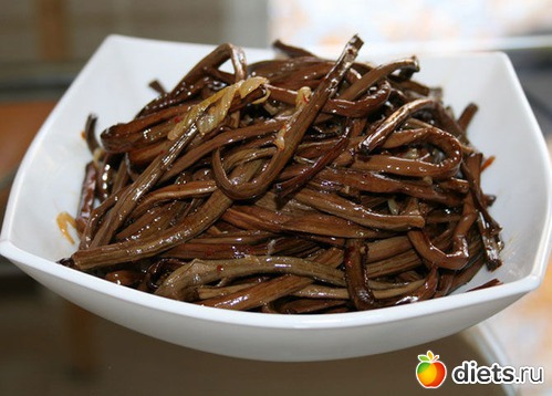 Салат выглядит так: (здесь просто отваренный папоротник)