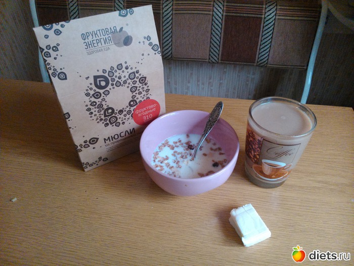 Завтрак - вход пошли стратегические запасы мюсли, ну не нравятся они мне, я бы лучше кашку съела, но до зарплаты еще несколько дней, так что подъедаю запасы... Так же сыр и кофе..