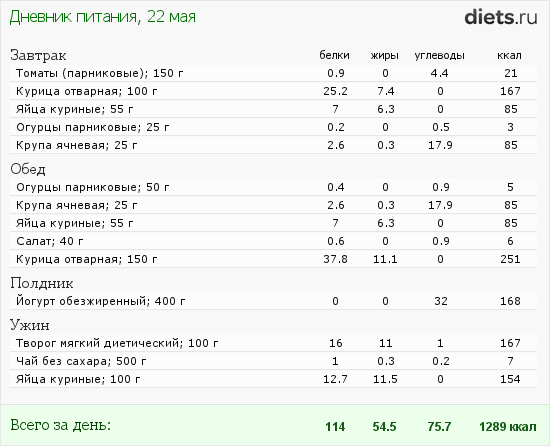 Вот, и в итоге перенабор по углеводам на 25 г!