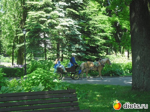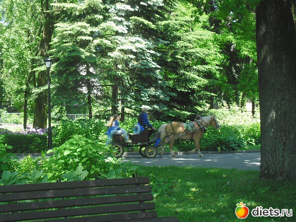 много скамеек, беседок, лошадки, пони, на каждом углу кафешки – соблазняли нас ужасно.