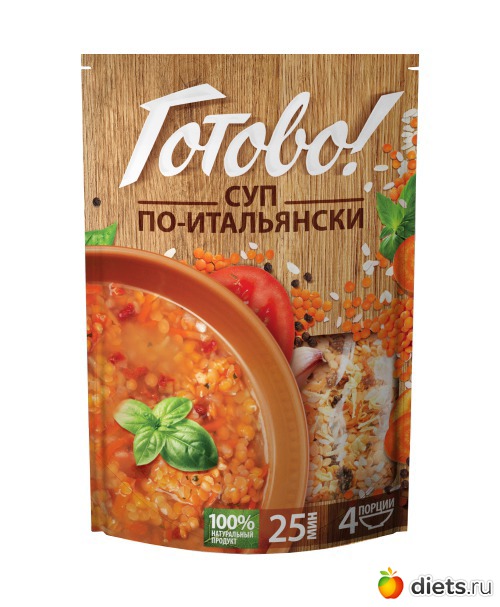 Состав: чечевица красная, рис круглозерный, овощи и зелень сушеные (томаты, лук репчатый, морковь, чеснок, базилик, орегано), перец черный молотый.
