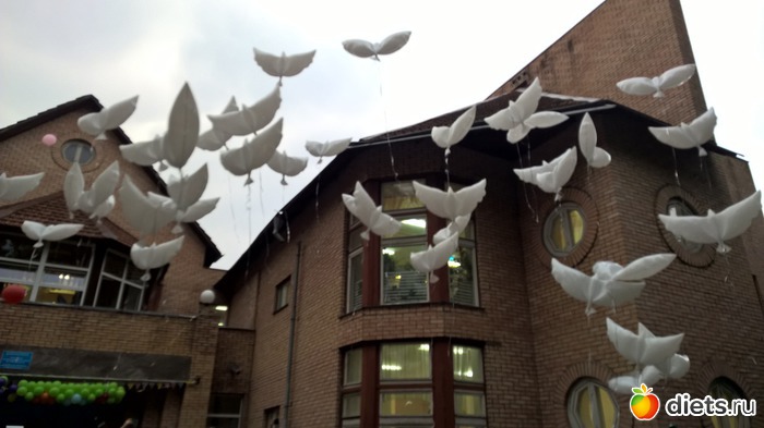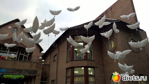 Шары и правда очень красивые, такие белые голуби. Когда дети запустили в небо почти 60 таких шаров, просто дух захватило. Очень красиво и эффектно получилось.