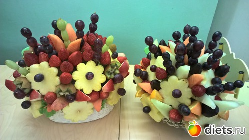 Мне тоже очень понравились эти фруктовые композиции: яркие и очень аккуратно сделаны. Они отлично украсили наш праздничный стол.