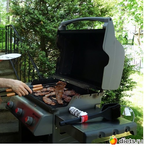 Заранее начистила картошки ведерки и мясо замариновала, если можн так назвать - бараньи ребра в соевом соусе, а стейки в соли и розмарине. А сосики так и остались в упаковке