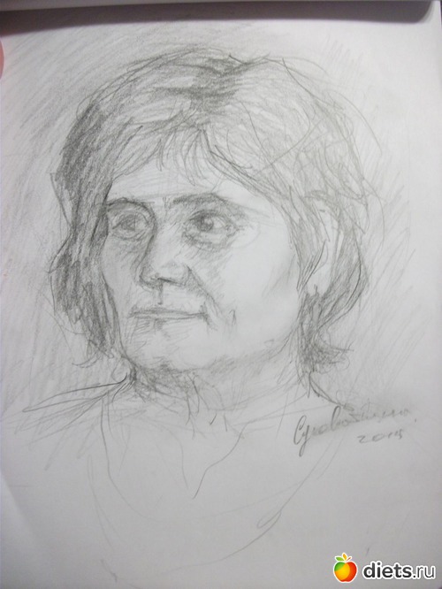 Дочка у тебя замечательно пишет. Я, кстати, тоже подумала, что там, где твоя мама нарисована, что это ты, но за счет карандашных штрихов выглядишь старше.