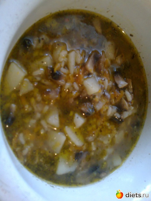 О - сварила супчик, а то как мама бы сказала, что я давно "горячего" не кушала..получился густой. Ингредиенты просты: 2картошки, чуточку риса, пережарка лук/морковь и шампиньоны + специи. Жаль зелени не оказалось.. еще я скушала 2помидорчика из консервации.
