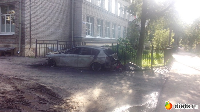 Оказалось горит машина, хорошо не рядом с нашими окнами. но жутковато, начали взрываться колеса, потом видно еще чего то взрывалось, раз 6 бахало, пламя такое огромное было, пожарные долго ехали. Потом вонища стояла еще часа два. Утром пошли смотреть чего горело, бмв какая то, видно кто то кому то насолил, после такого экшена еле заснули потом. Мужу говорю "как хорошо иметь машинку за 150тыс, хоть не так жалко"