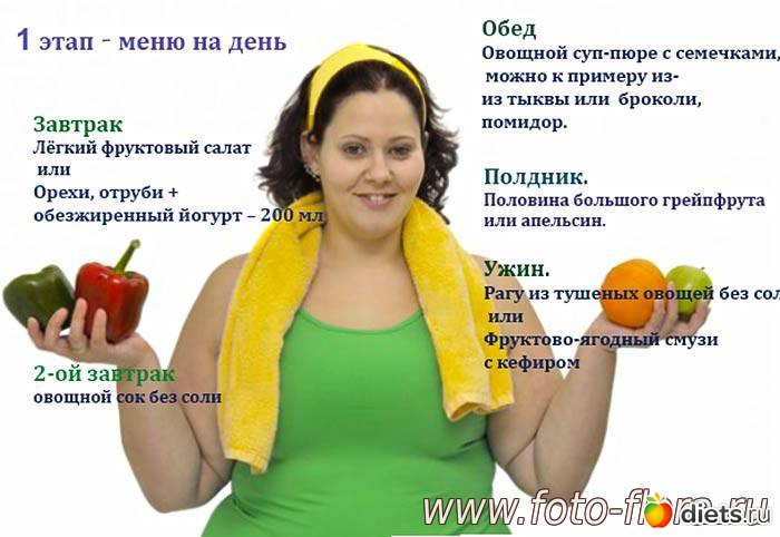 Разрешенные продукты для 1 этапа диеты Ковалькова