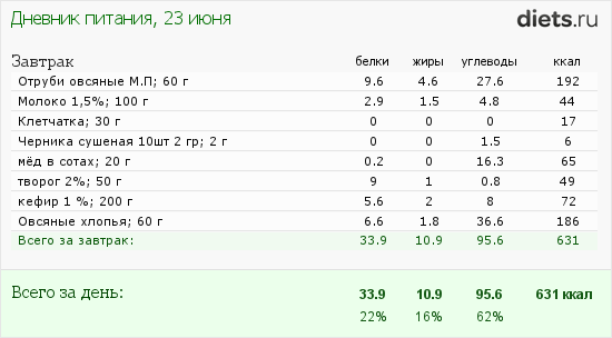 Я завариваю 20гр овсянки на кружку кипятка (добавляю ещё,но это не обязательно овсяные отруби и клетчатку по 1 ч ложке)кладу 1 ч ложку мёда или захзам ,добавляю 20мл молока и 1ст. л творога 1,8% и пью эту кесю-месю как проголодаюсь... 2-3 стакана получается за день. И в промежутках чай с мёдом...может ещё мёд даёт сытость-не пойму..но я вообще не голодная....Утро я начинаю с чая с мёдом (1\3 или 1\2 ч. ложки,потом хочу есть только ерез 2-3 часа и ем эту кашку,вернее пью.... потом опять чай Часв в 20-21ч ещё такую кашку т.к. спать ложусь после 1ч ночи...