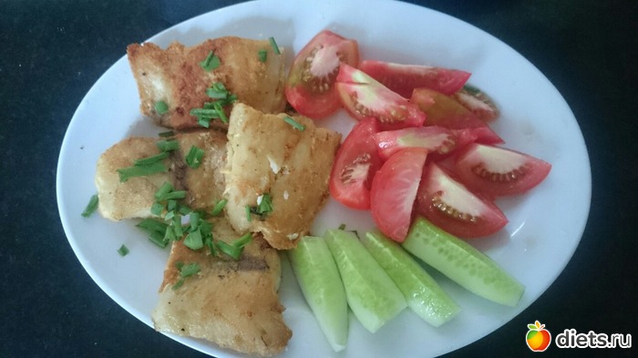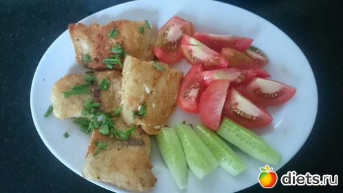 Сегодня рыбный день.. Пожарила филе барракуды и порезала помидорки..