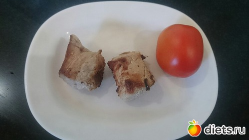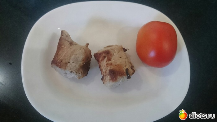 В 14 часов 2 кусочка шашлыка и помидорка..