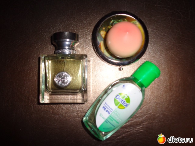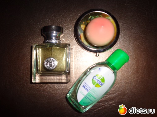 Любимые духи, спиртяшка для рук, мини зеркальце и блеск