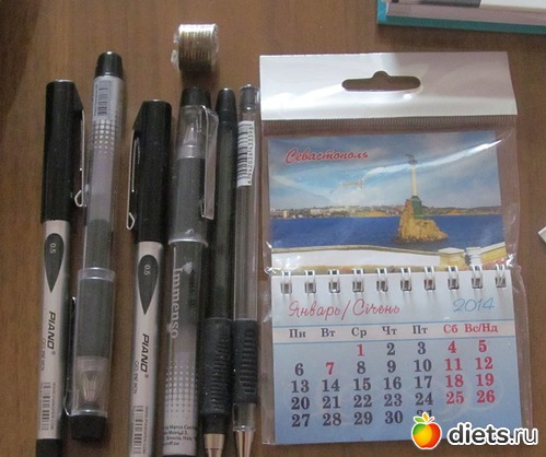 и вот такое количество ручек и даже календарь..