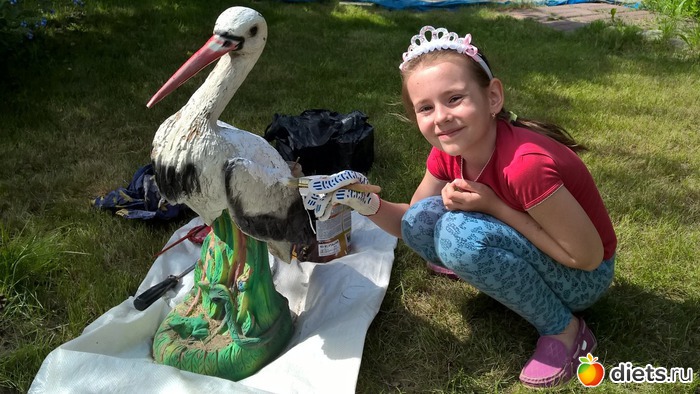 Молодцы вы с дочкой, всех обновили,гномики нарядные стали,аист как новый