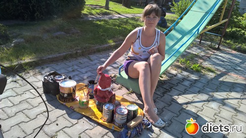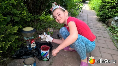 Панда тоже теперь весь в краске, Сонька его с собой везде таскает, так что он нам тоже сегодня помогал.