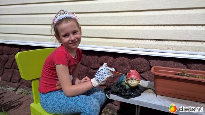 После обеда мы с дочкой решили обновить шапочку у маленького гномика. А то она совсем облезла.