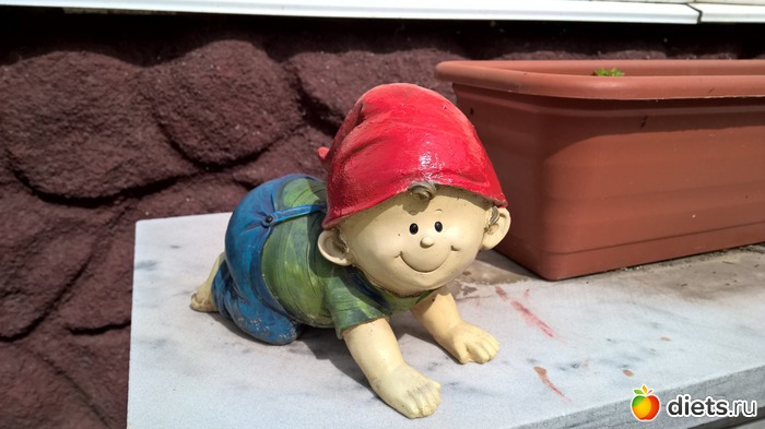 А еще у нас в саду поселился новый гномик. Сонькин крестный подарил.