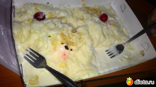 Это гюллач. Ели с мужем его))) Он молочный, там типа лавашного теста. Вкус ванильно- молочный) И сахара не так много. Очень вкусно