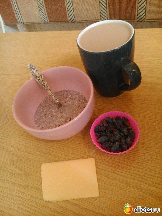 Завтрак - каша, кофе с молоком, сыр, ягоды (жимолость)