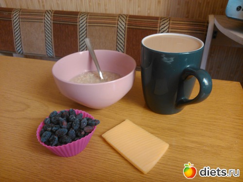 Завтрак - каша, кофе, сыр, ягоды (жимолость)