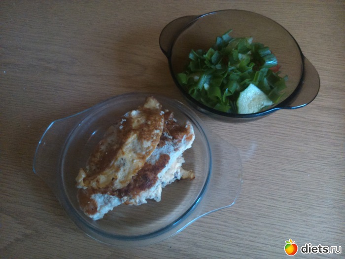 Ужин - куриные отбивные с сыром (что-то мне не очень понравилось, раньше делала вкусно было, а в этот раз как-то ни так получилось) съела половину, и салат...