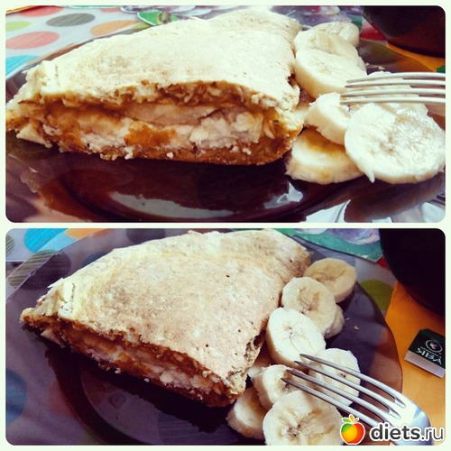 Завтрак : нашумевший в интаграме овсяноблин. Наконец-то я созрела его попробовать.