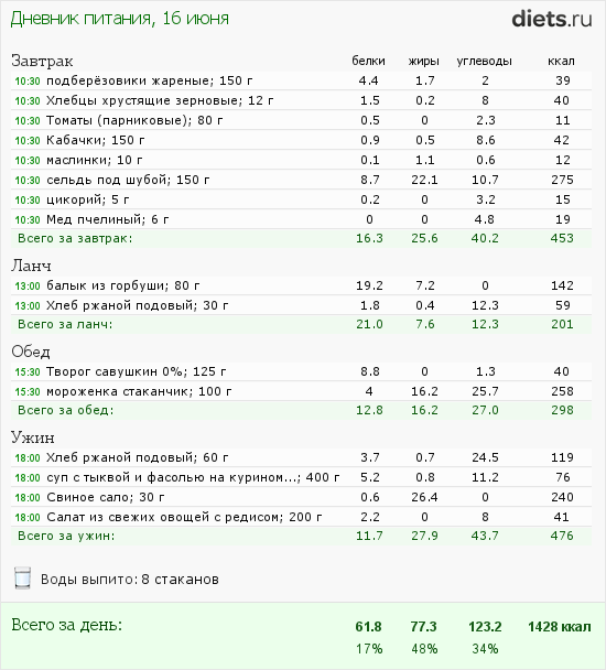 Итак, что я наела за вторник, по калориям нормально, а жиров конечно перебор, но очень хотелось САЛА