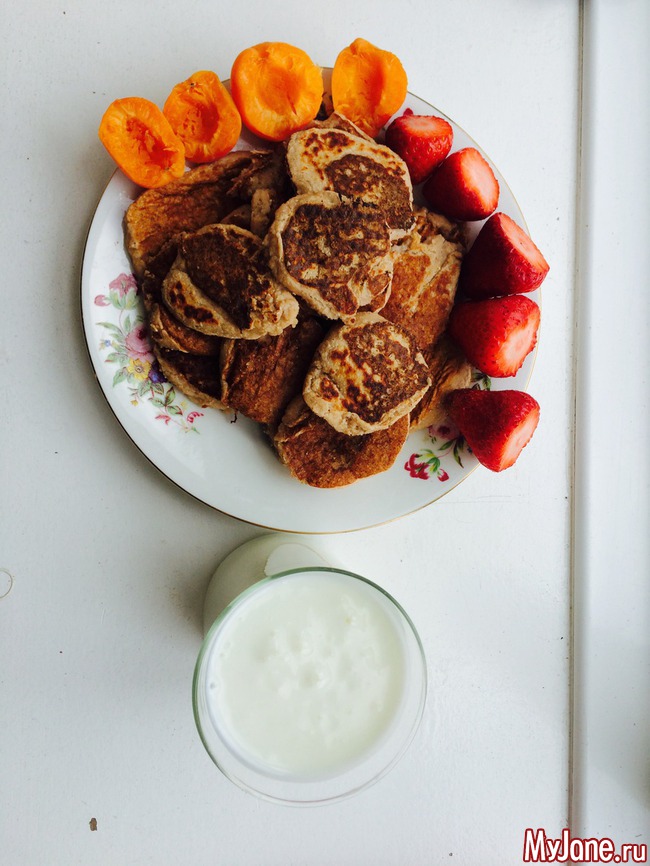 2 ст.л. кокосовой муки, 1/2 порция протеина, 30 гр овсянки (не надо было ложить, я рецепт перепутала), 1/2 ч.л. сахзама. На сухой сковороде