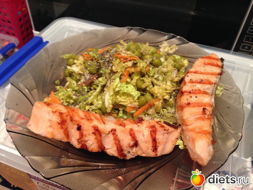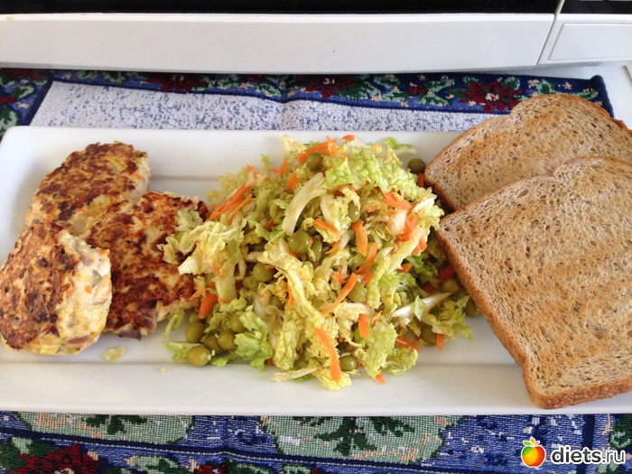 В итоге куриные котлеты, хлеб ц/з, капустный салат