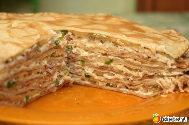 Diets.ru Торт из яичных блинов с куриной начинкой.