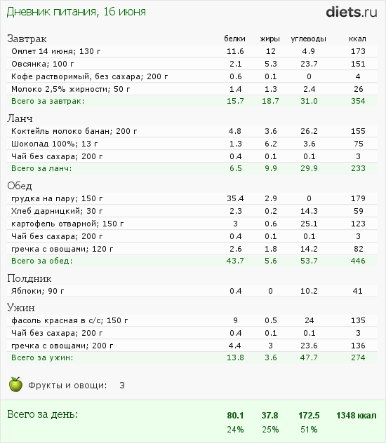 вот мой вчерашний рацион, я мне кажется обжираюсь просто по сравнению с Вами, главное чувства голода нет и отвесы радуют,