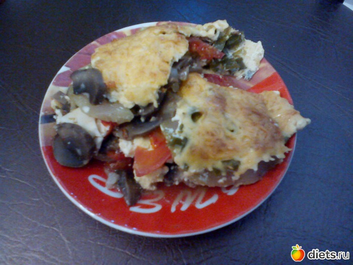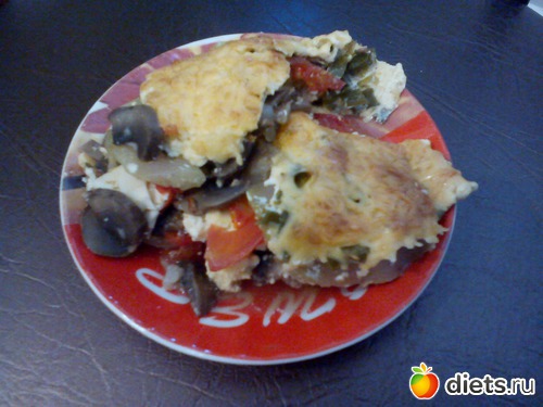Продукты : филе рыбы 500 г, грибы 150 г, кабачок 1 шт., помидор 2 шт, лук репчатый 1 шт, яйца варёные 2 шт, сыр 100г, йогурт 250 г, лимонный сок 2 ч.л., зелень, соль, перец по вкусу.