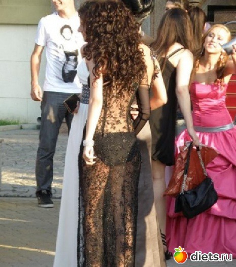У моего брата на выпускном тоже одна девочка пришла в комбинезоне из черного гипюра без подклада