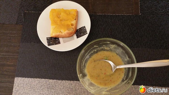 Это был полдник, шарлотка мангово -ананасовая, диетическая и супчик с индийским специями