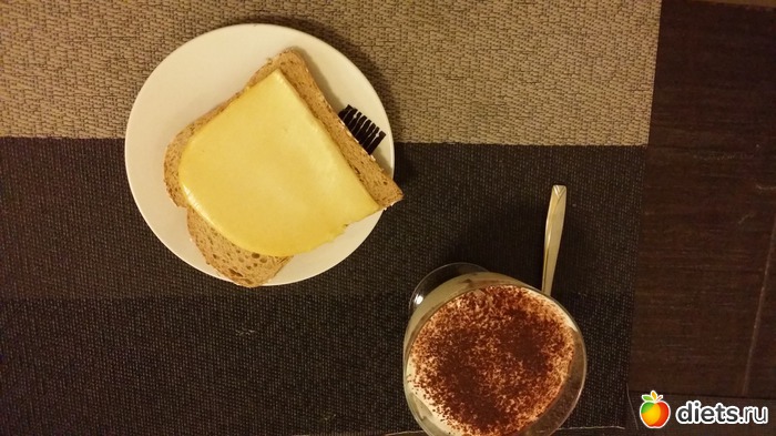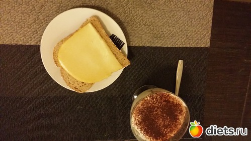 Ну и ужин, тирамису с манго, съела половину и бутерброд с сыром