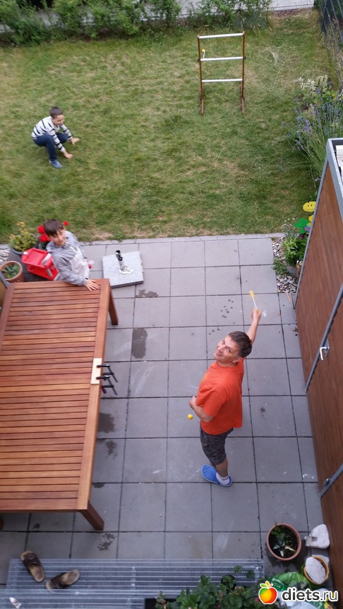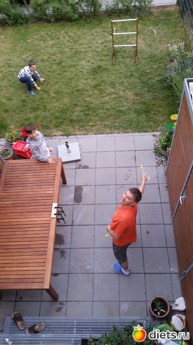 Вечерком мальчики поиграли в лестничный гольф. Очень занятная игра.
