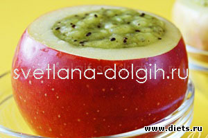 1. С яблока срезать верхушку и с помощью чайной ложки удалить мякоть. Всю не выбрасывать, только косточки, остальное использовать в пюре!
