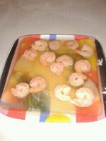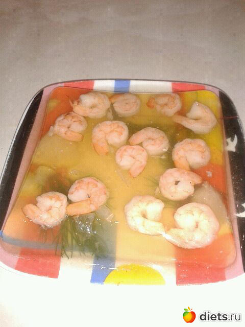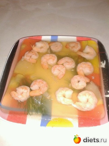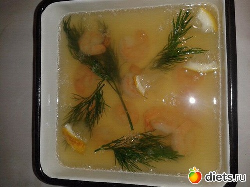 отварила креветки (500 гр очищенных), разложила по формочкам.( 6 формочек пол-литровых)