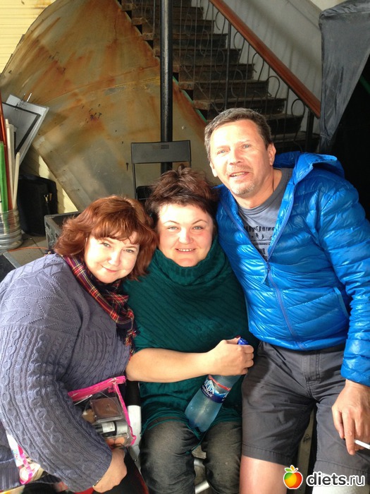 С гримёршей Надюшкой и с звукорежиссёром Серёжей Гусинским (он играл капитана Семёнова в особенностях национальной охоты)
