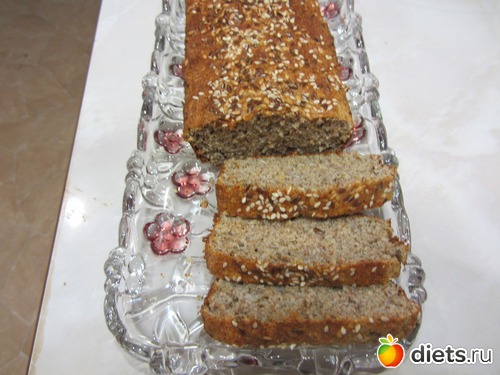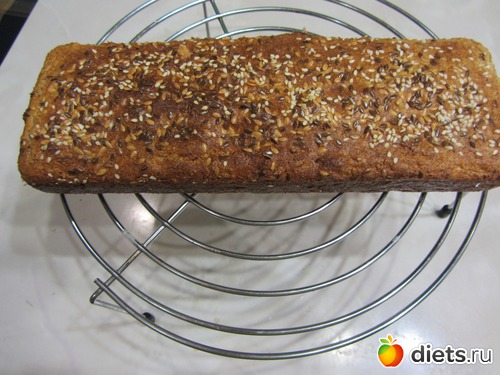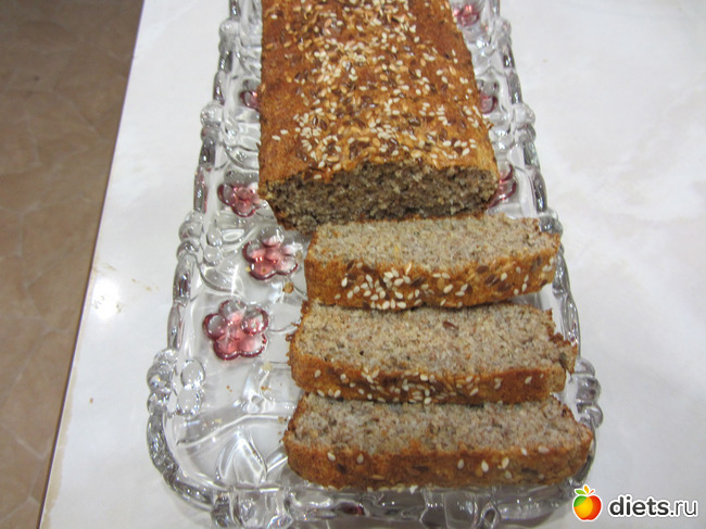 Смешать все сухие ингредиенты, взбить желтки, добавить к сухим ингредиентам, будет очень густо с трудом мешается не пугайтесь, Добавляем частями взбитые белки перемешивая сверху вниз, соду погасить уксусом добавить в тесто, перемешать, прямоугольную форму смазать оливковым маслом посыпать овсяными отрубями, вылить тесто разровнять лопаткой посыпать семенами кунжута и льна, поставить в нагретую духовку при 250 градусах на 20 минут. Или духовка гриль для тостов она нагревается сразу для нее достаточно 20 мин, не нужно предварительно нагревать
