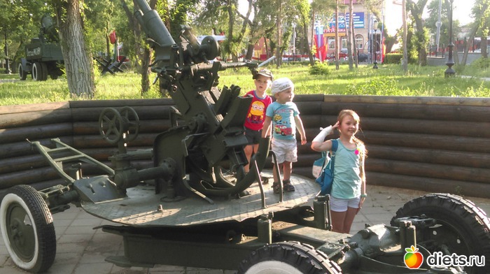 А пока я подготовила вам отчёт об одной из наших прогулок в Оренбурге. Это Сад имени Фрунзе. Лет 15 там выставляют военную технику времён ВОВ. Сейчас к 70-летию парк ещё больше облагородили и сейчас он считается музеем под открытым небом