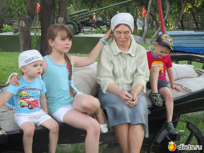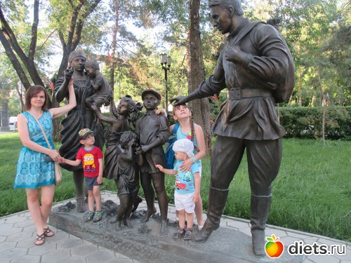 этот памятник посвящён семьям, провожающим своих мужчин на войну. Там надпись <возвращайся живой>
