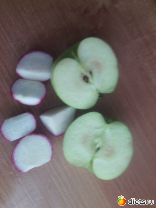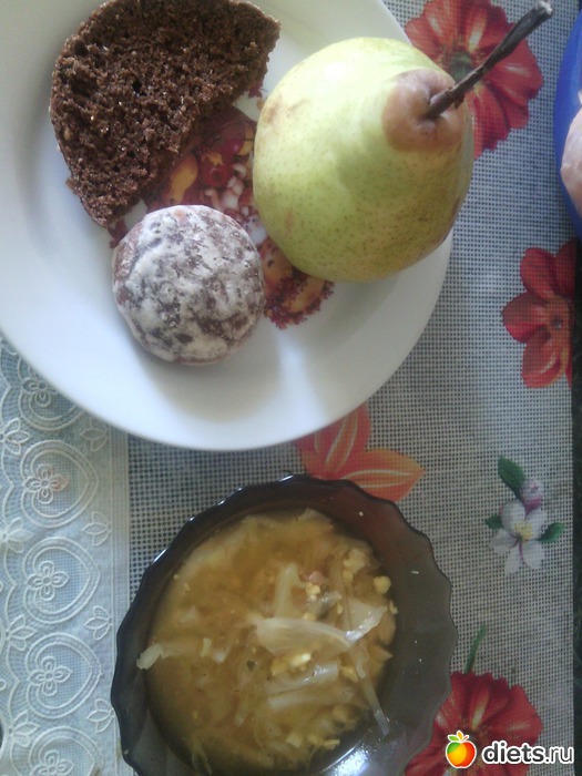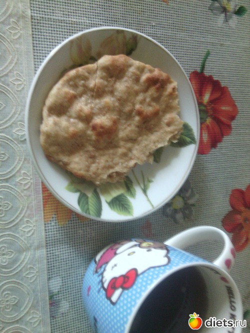 лепёшка (две, как на фото), два кусочка пирога, пряник и яблоко
