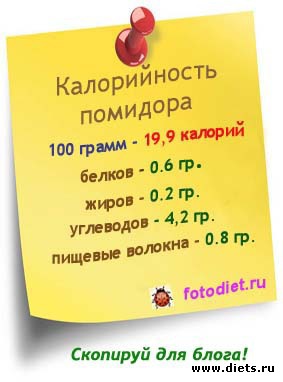 Информация взята с сайта http://fotodiet.ru/kaloriynost-pomidora.htm