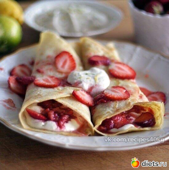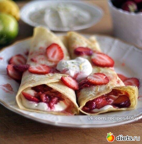 ПП блинчики с творогом и клубникой! Ингредиенты: