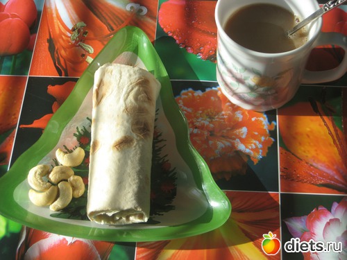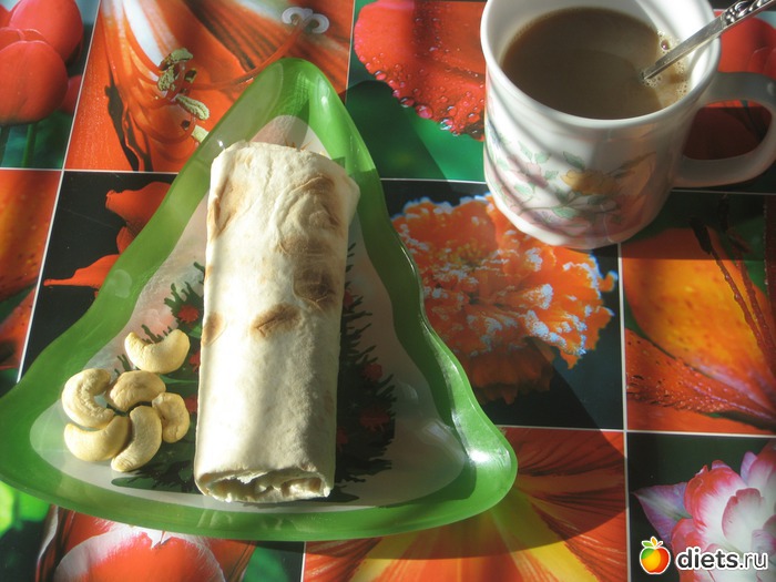 завтрак: как обычно кофе, лаваш с сыром лайт, орешки кешю