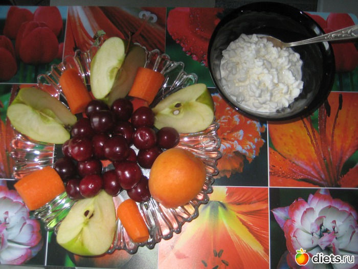 полдник: много фруктов и творог зерненый